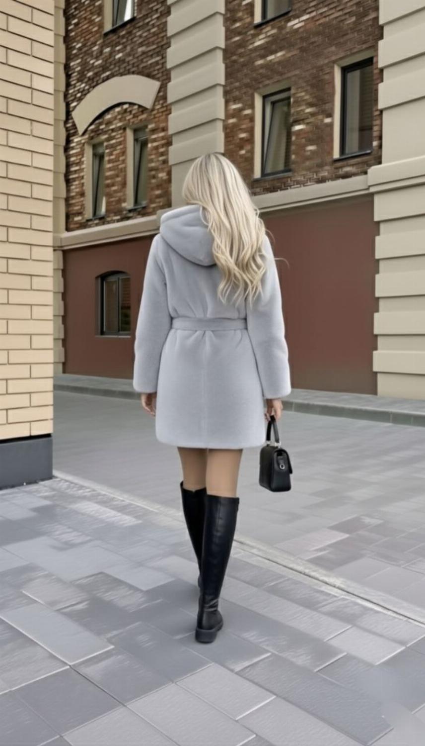 Стильне модне тепле жіноче зимове пальто з поясом та капюшоном "Henrietta"
