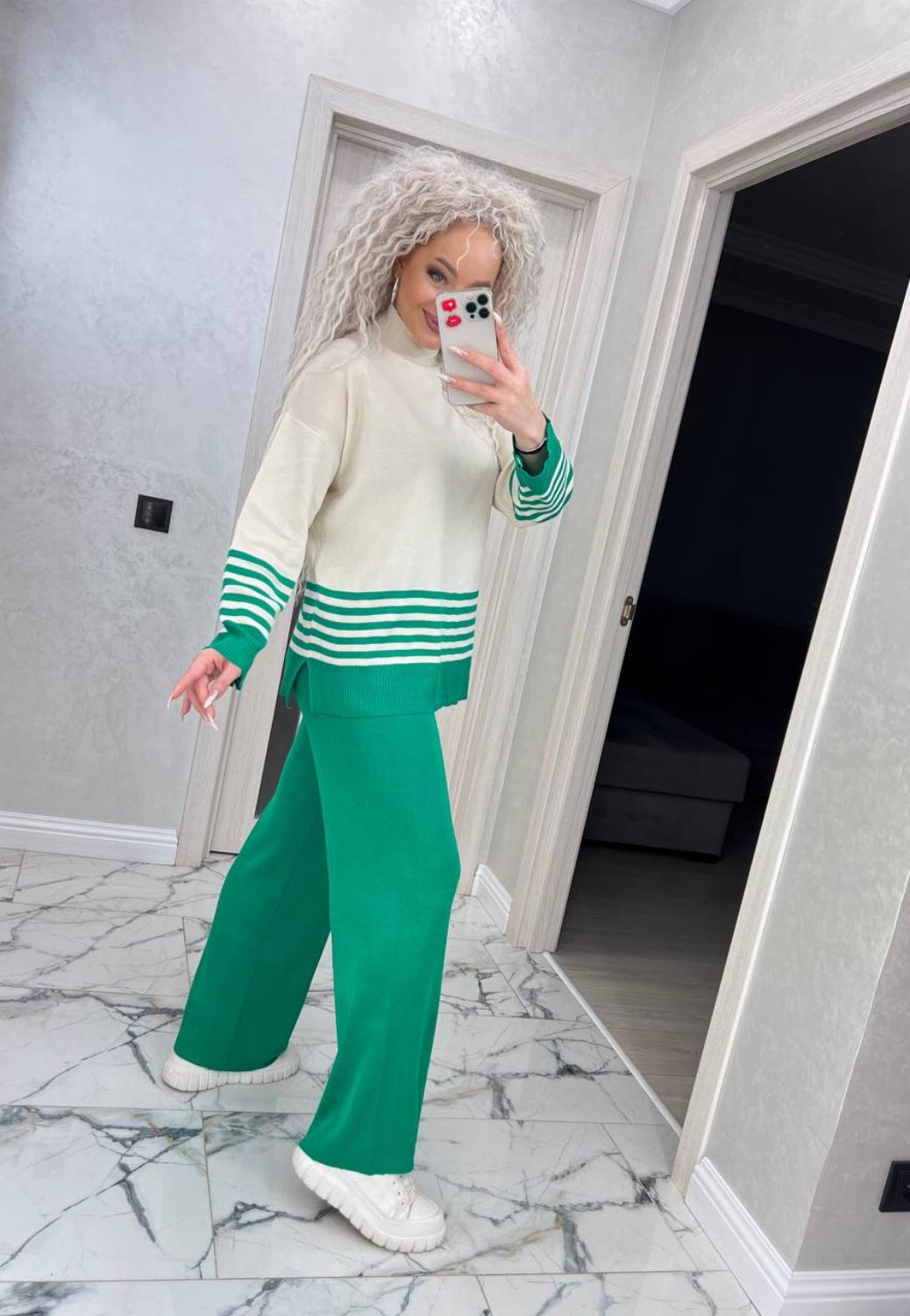 Стильний яскравий теплий жіночий костюм-двійка светр+штани "Charm"