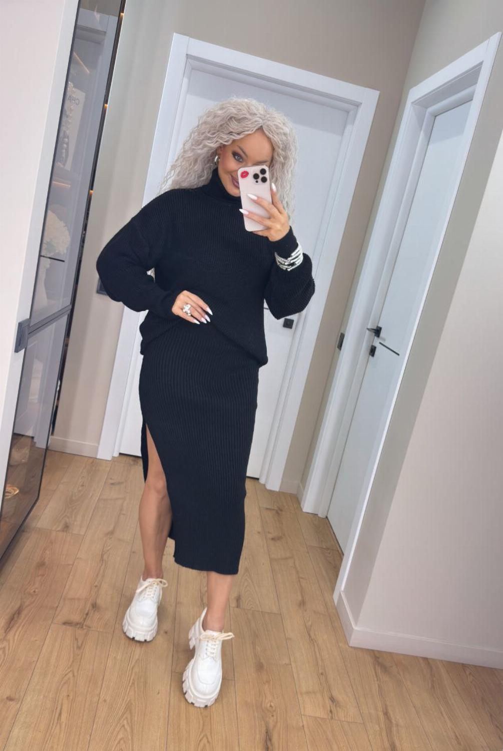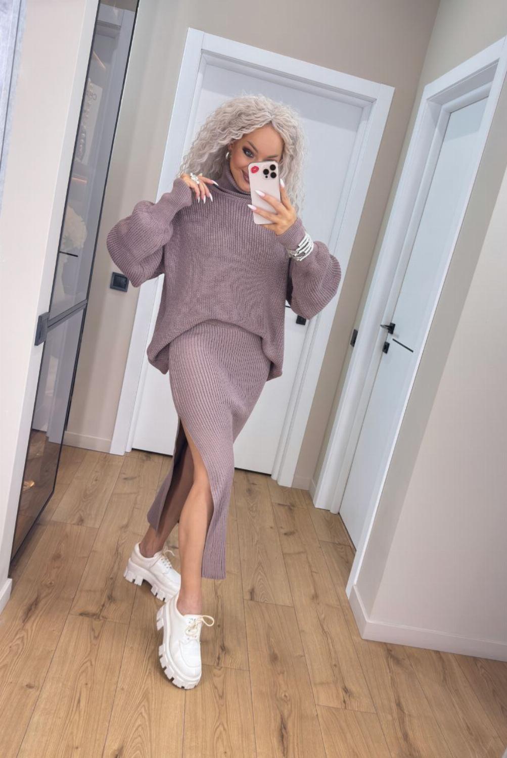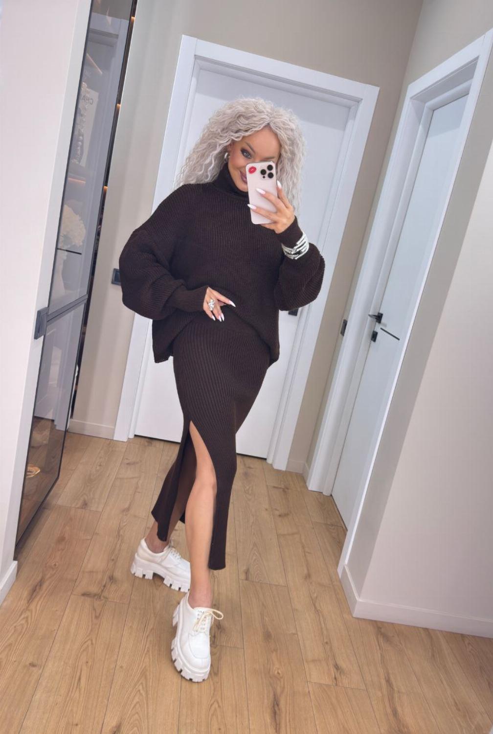 Стильний жіночий в'язаний костюм зі спідницею-міді та светром "Delilah"