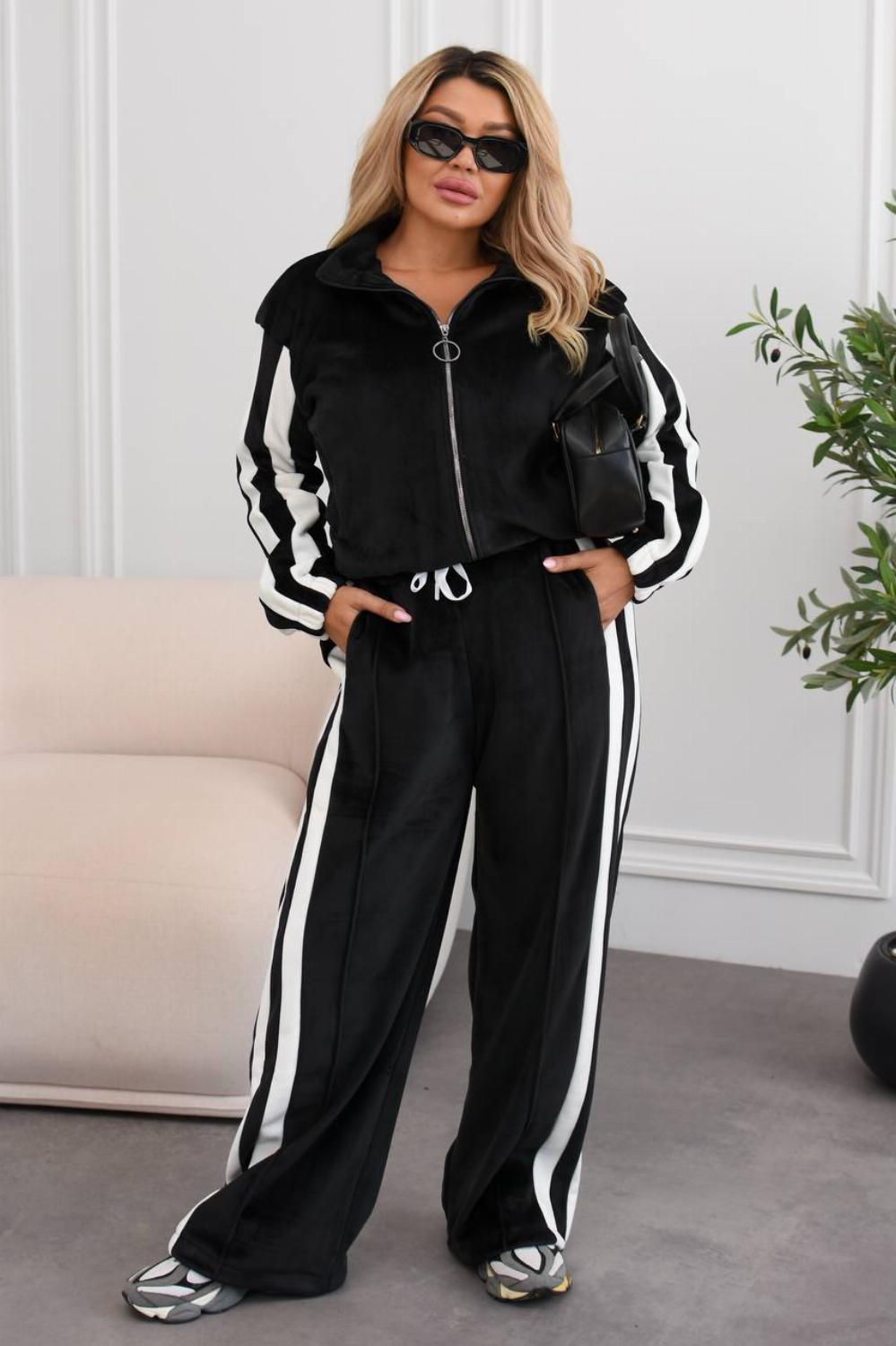 Трендовий жіночий велюровий спортивний костюм на хутрі з лампасами батал "Madison"