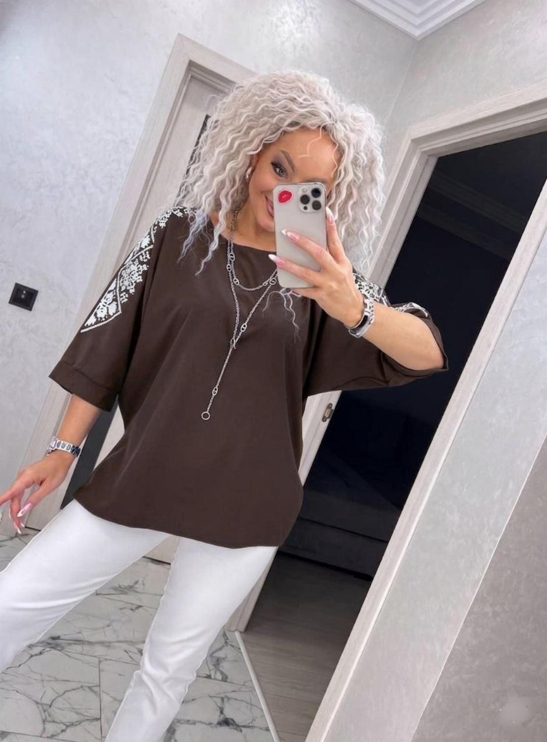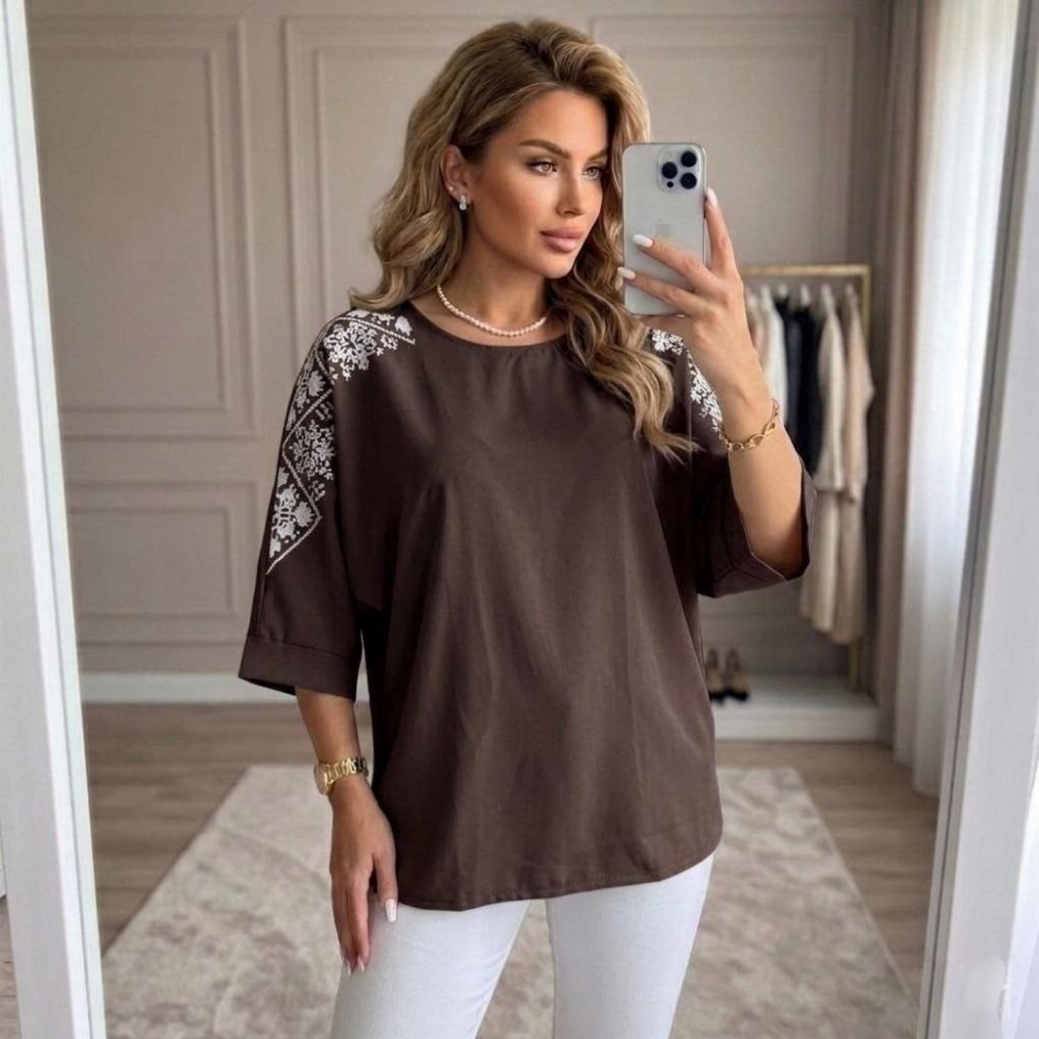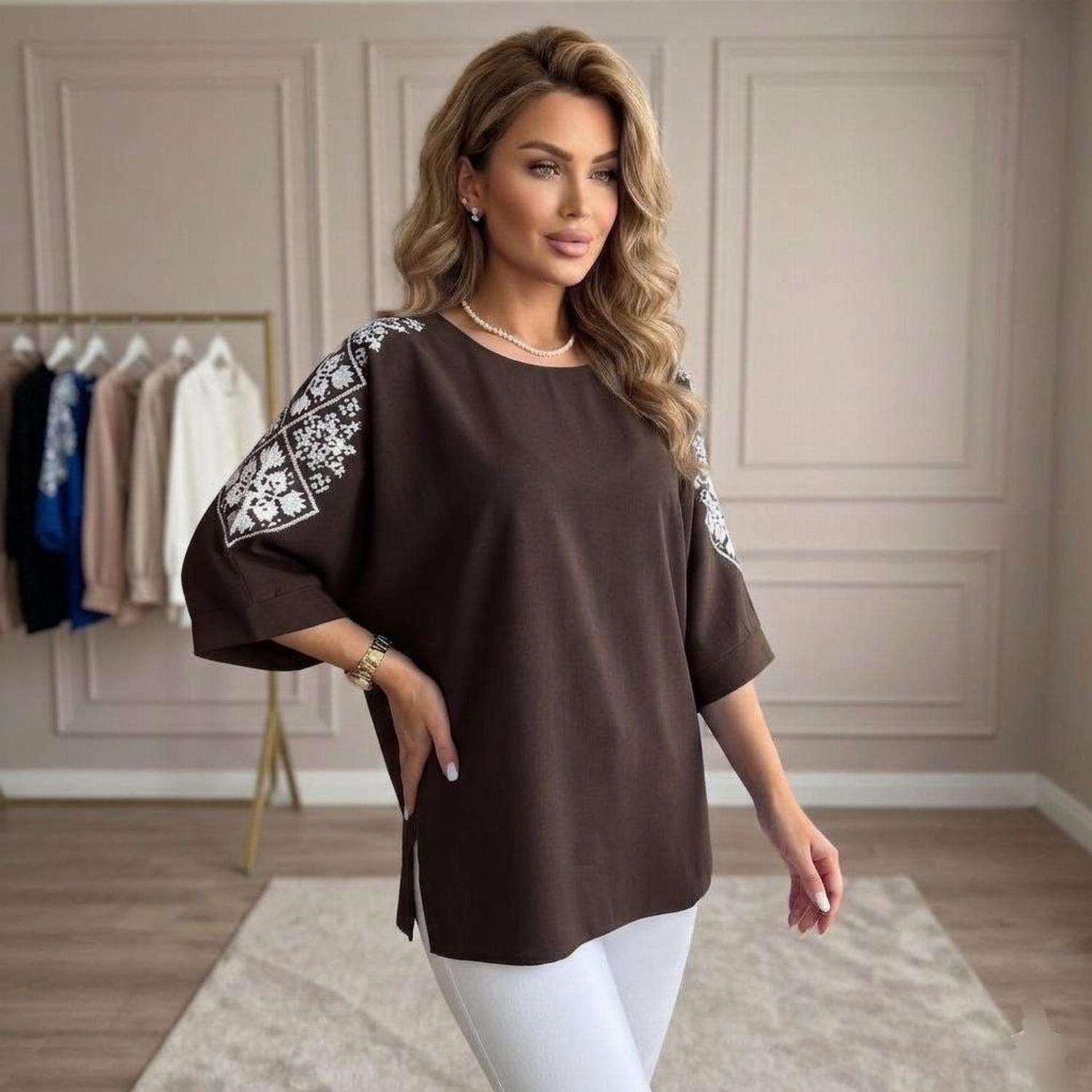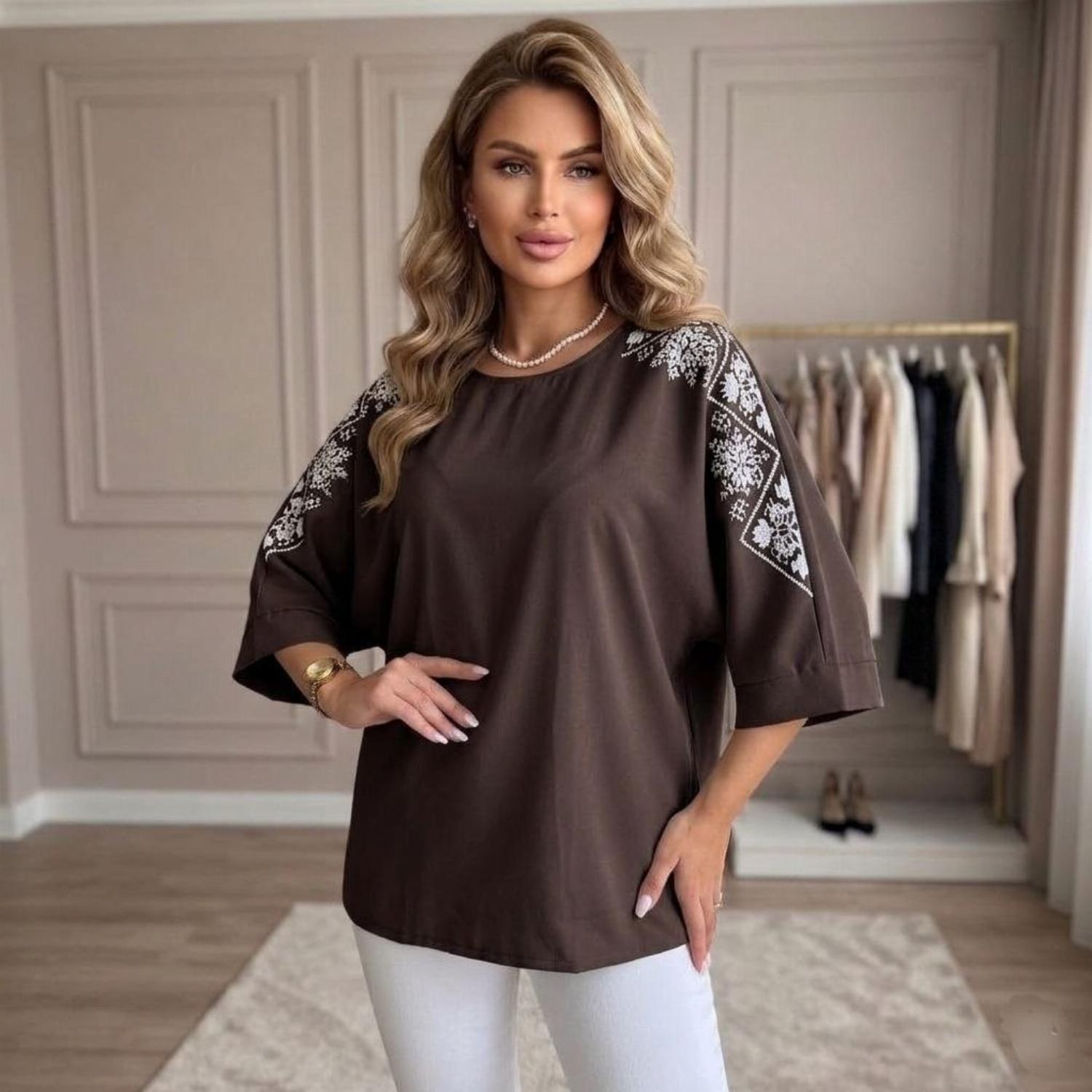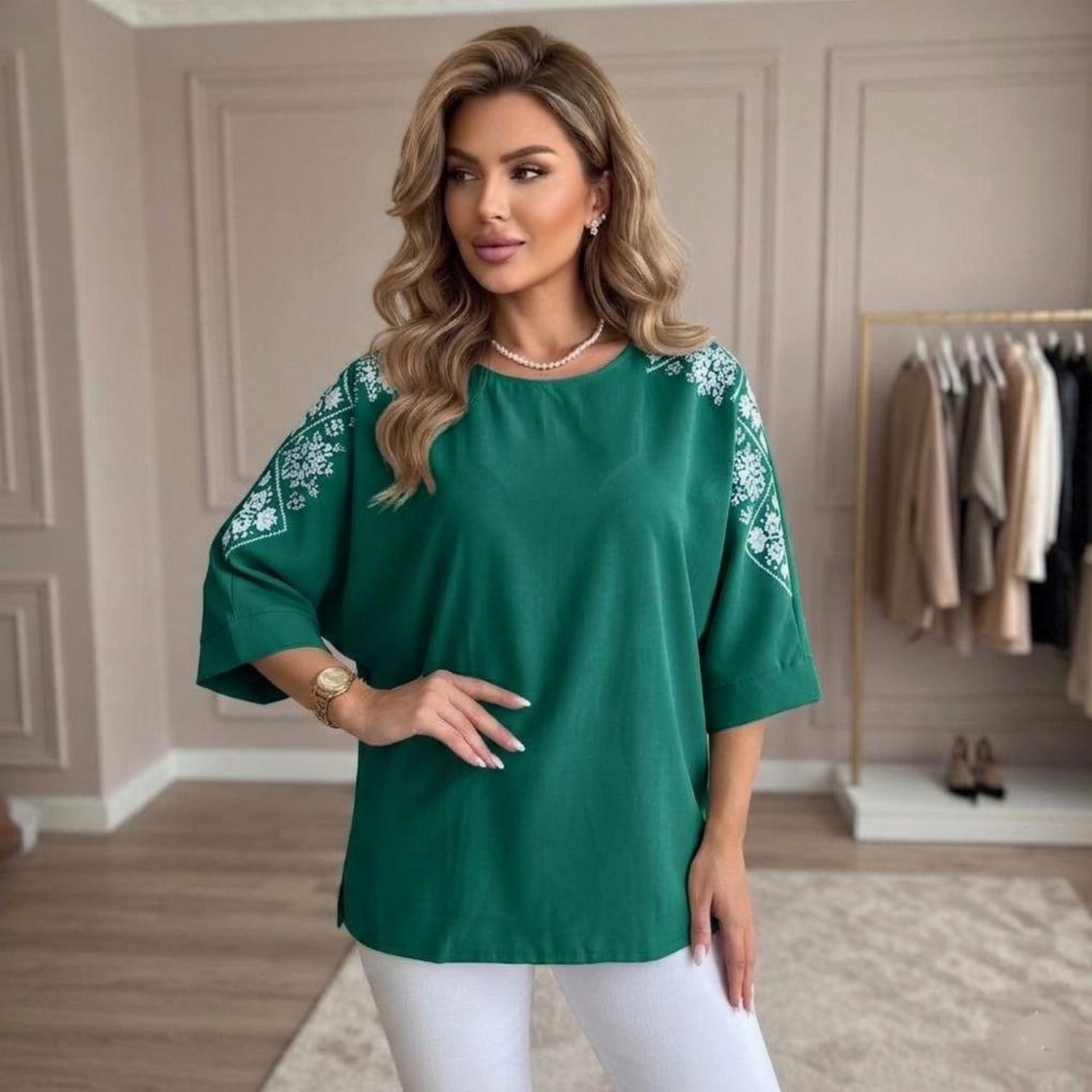 Представляємо вашій увазі хітову новинку і безсумнівний маст-хев сезону - светр з рукавом 3/4 «Vlasta». Модель виконана з суперсофту, прикрашена якісним та яскравим принтом на рукавах у вигляді візерунка української вишивки. Завдяки стриманому крою з круглою горловиною і простому дизайну, таку кофту можна сміливо надягати на роботу, будь-який захід або прогулянку. Кофта «Vlasta» відмінно поєднується з будь-яким низом - брюками, джинсами, легінсами і спідницями, що дозволить створювати різноманітні і стильні образи.