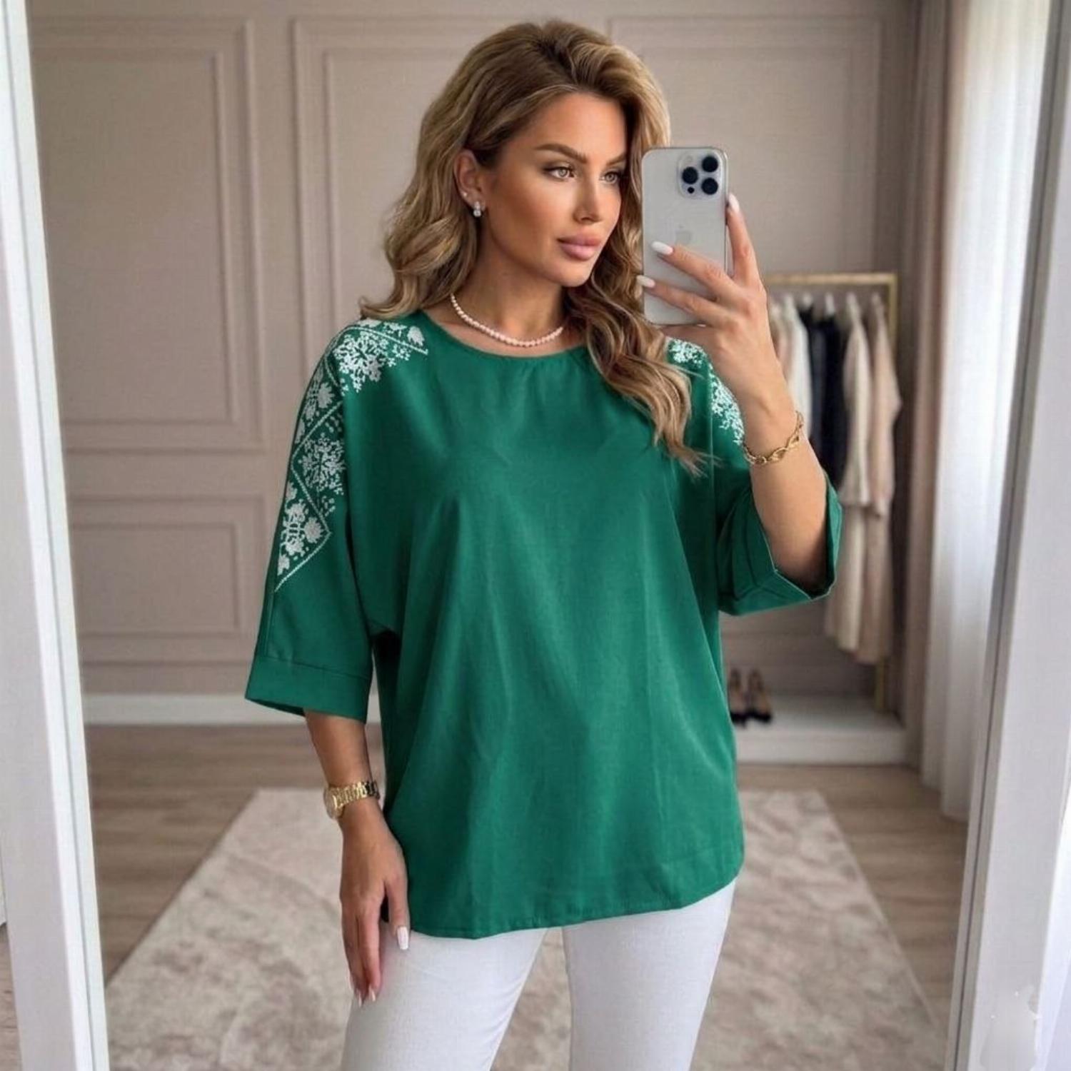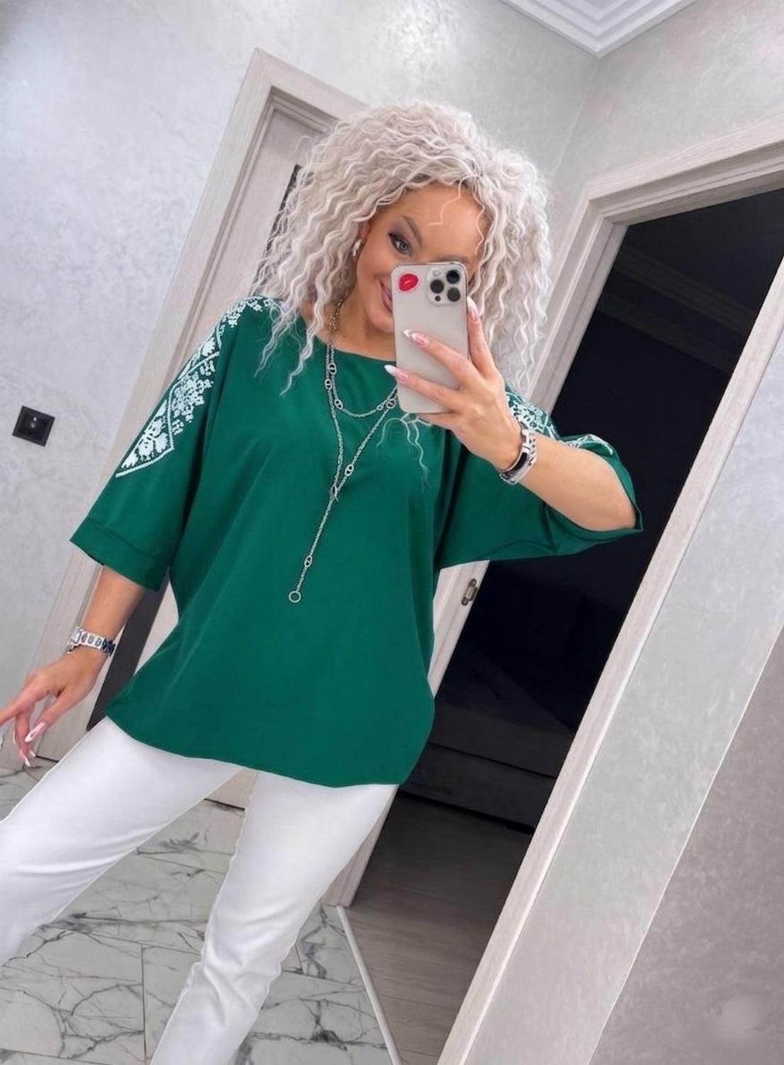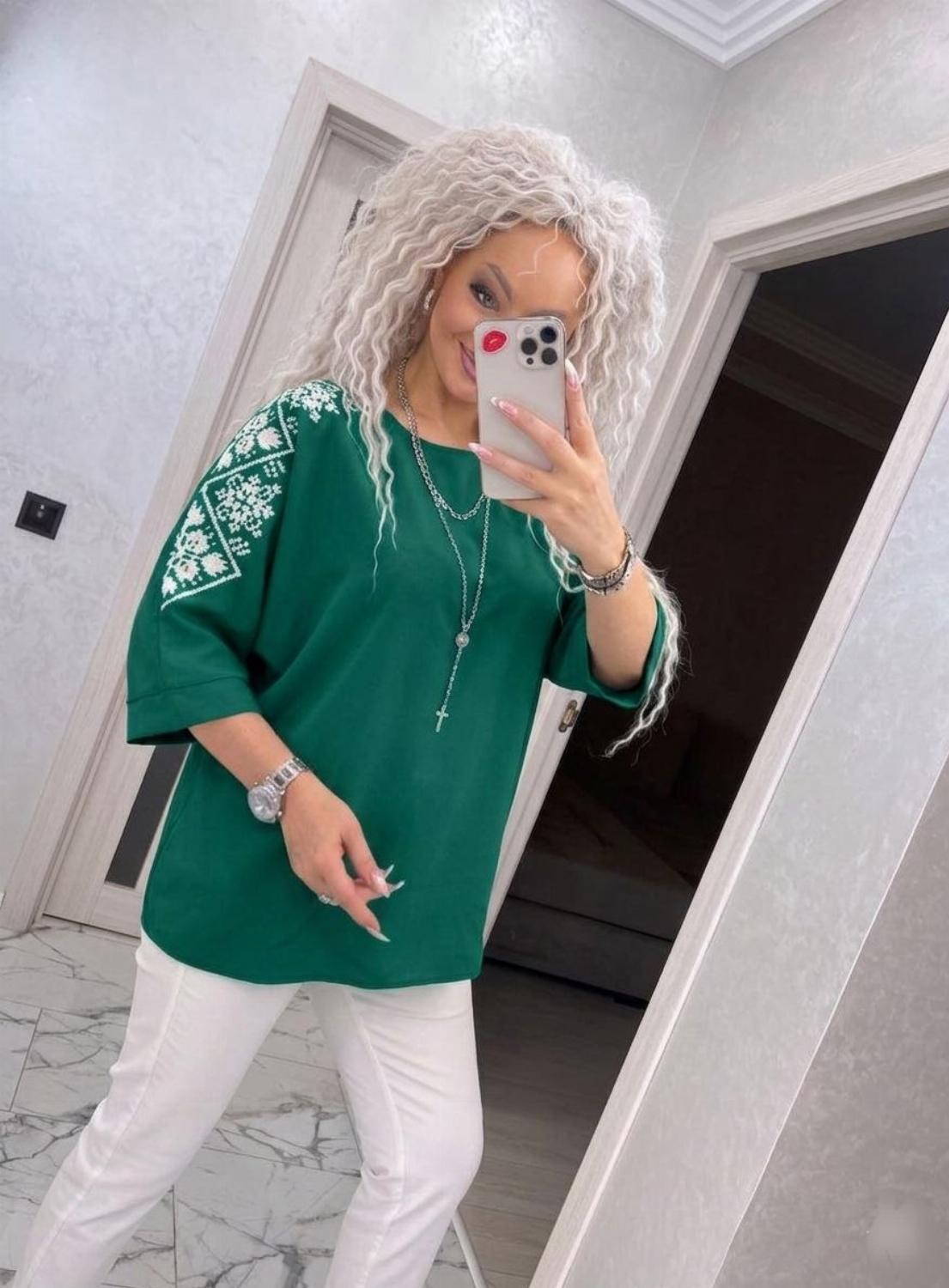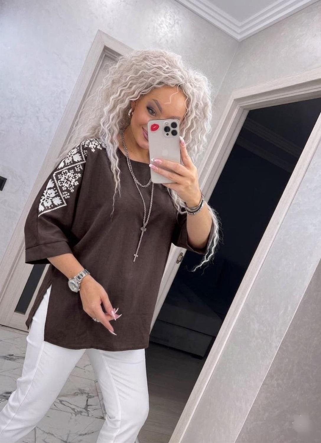 Представляємо вашій увазі хітову новинку і безсумнівний маст-хев сезону - светр з рукавом 3/4 «Vlasta». Модель виконана з суперсофту, прикрашена якісним та яскравим принтом на рукавах у вигляді візерунка української вишивки. Завдяки стри...