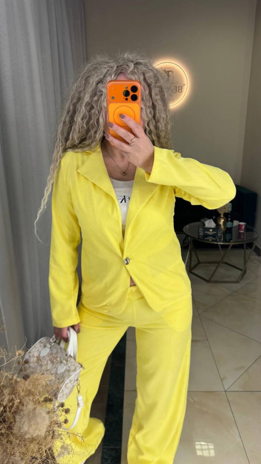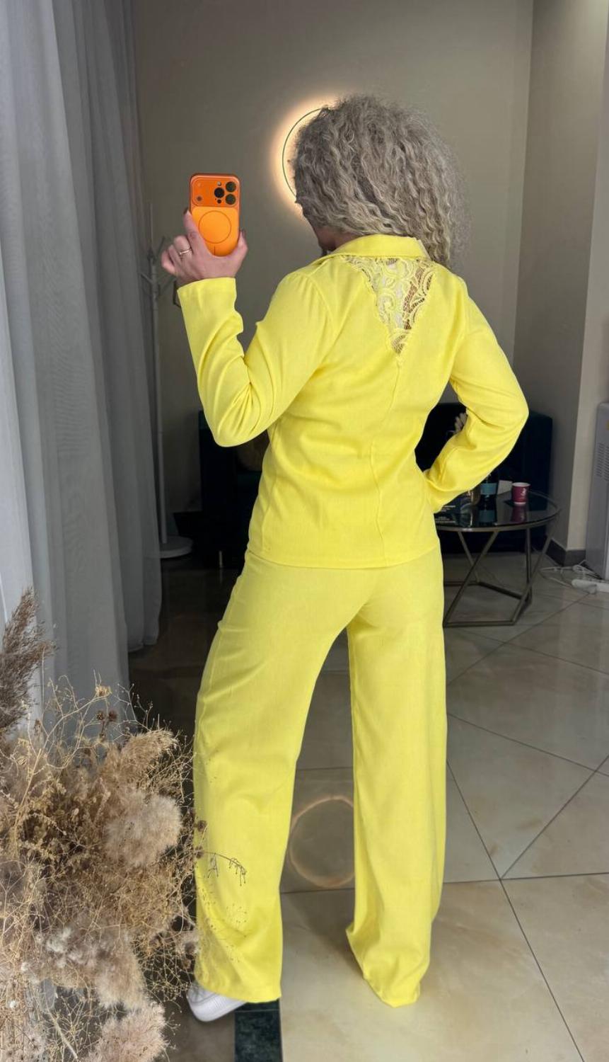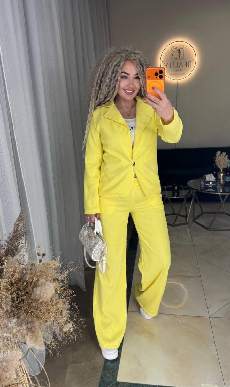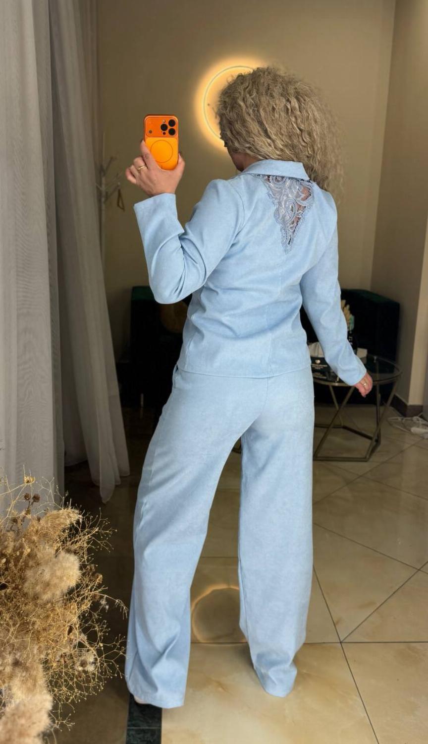Фасон: Широкі штани палаццо та вільний піджак створюють сучасний та легкий силует.