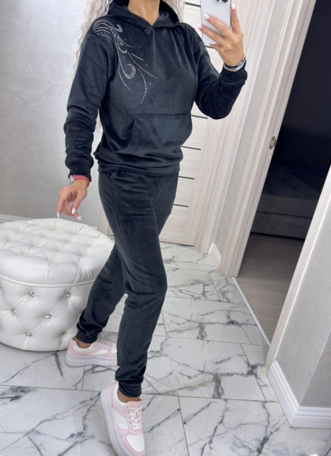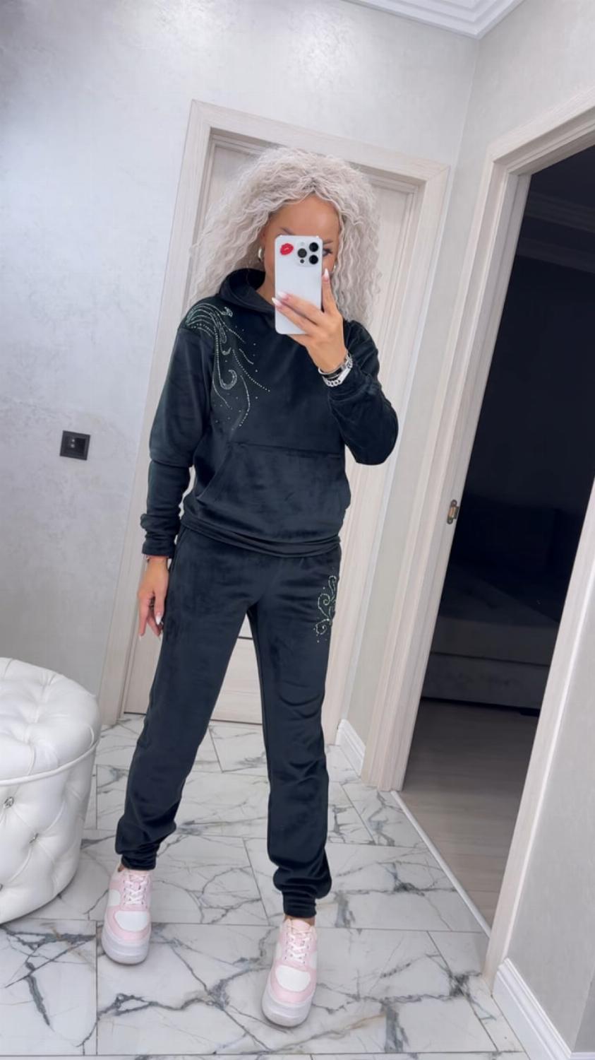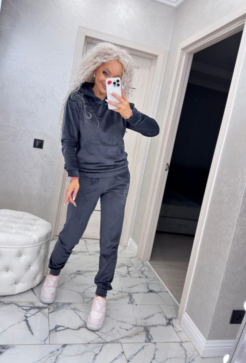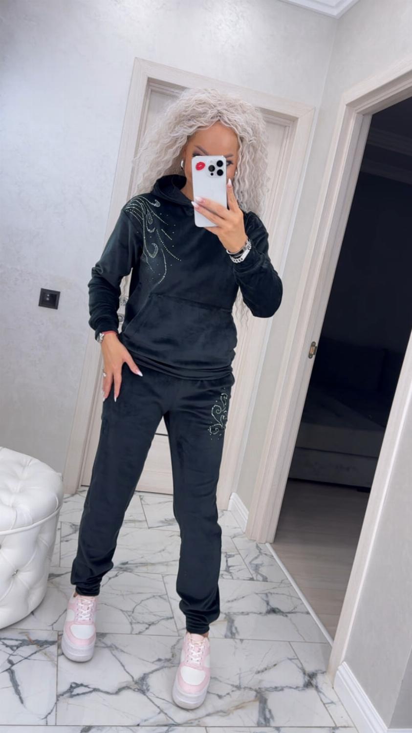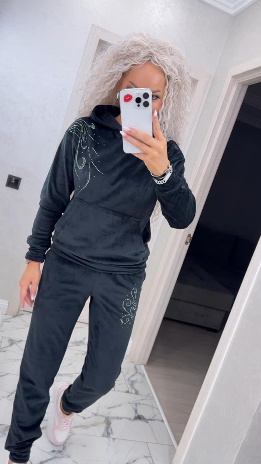 Відкрийте для себе поєднання стилю та комфорту з нашим сучасним костюмом із турецького велюру на флісі. М’який, теплий та приємний до тіла – він створений для щоденного затишку. Вишукані декоративні елементи на худі та штанах додають образу елегантності, а продуманий крій забезпечує ідеальну посадку та свободу рухів.