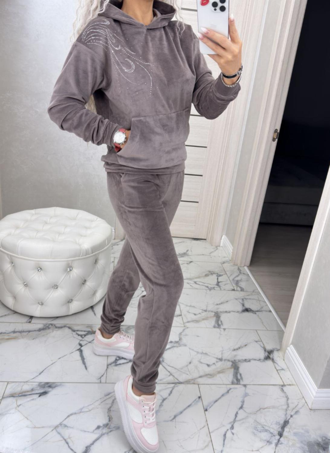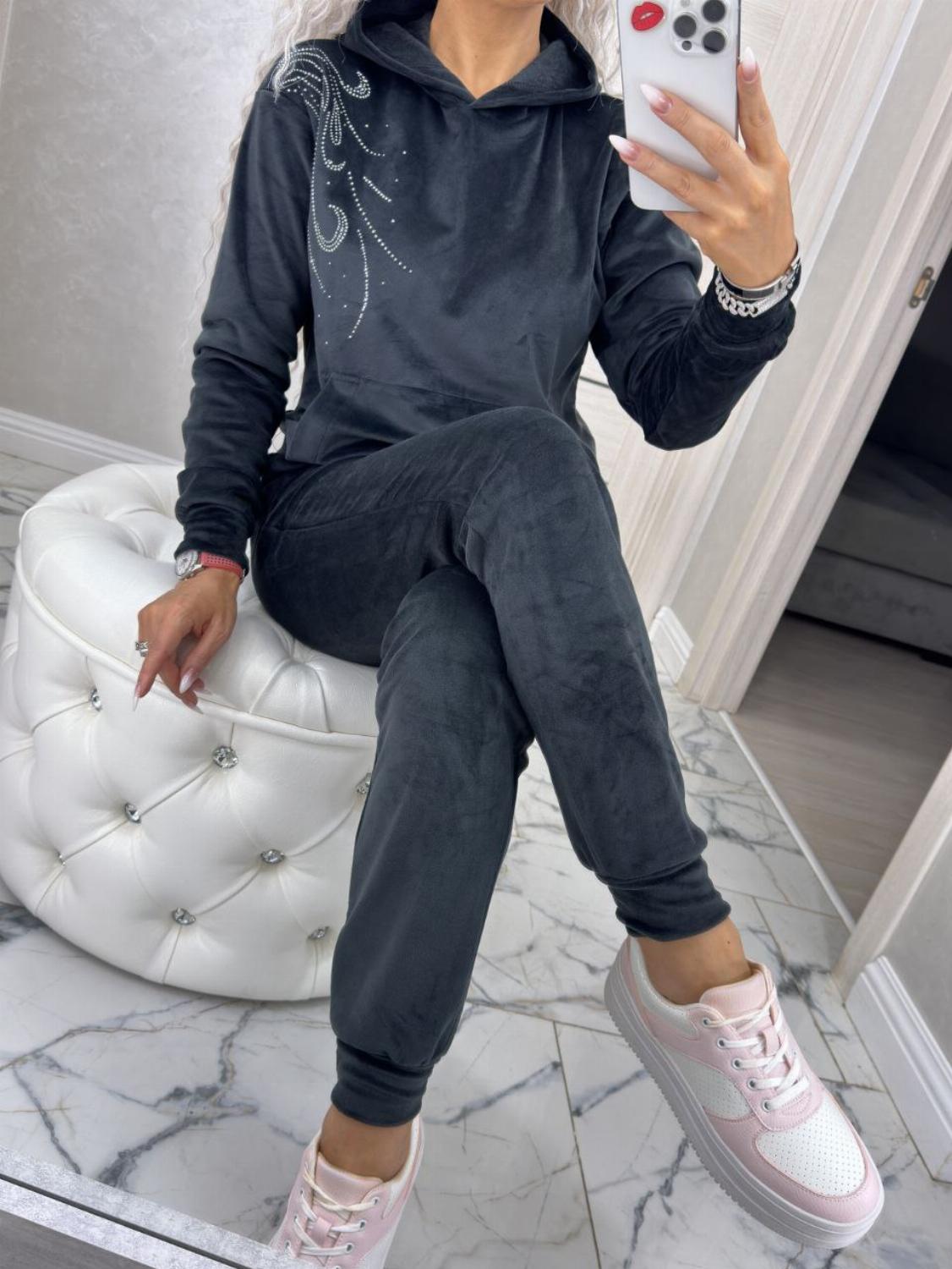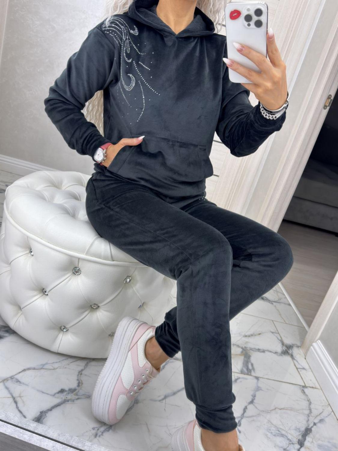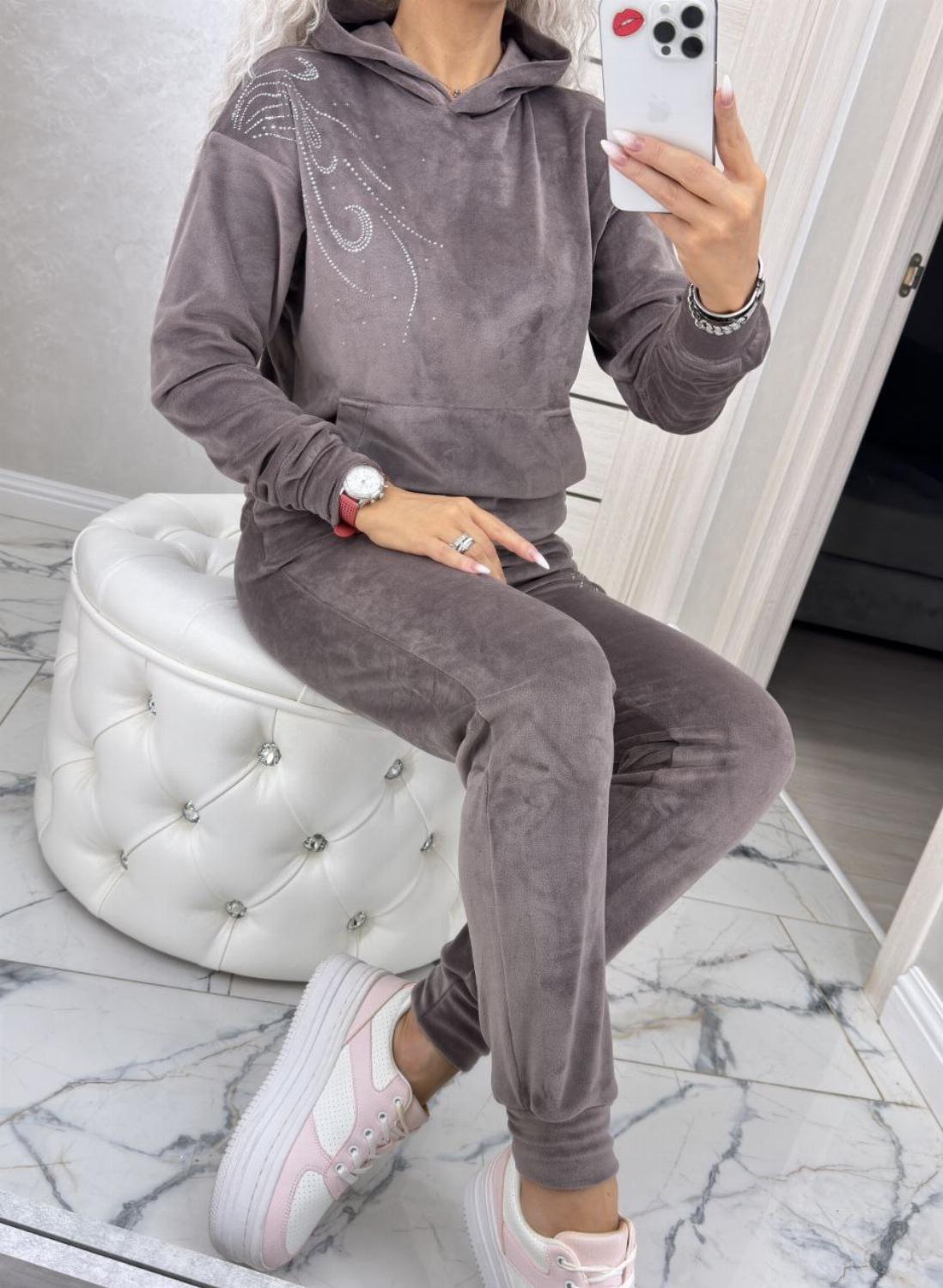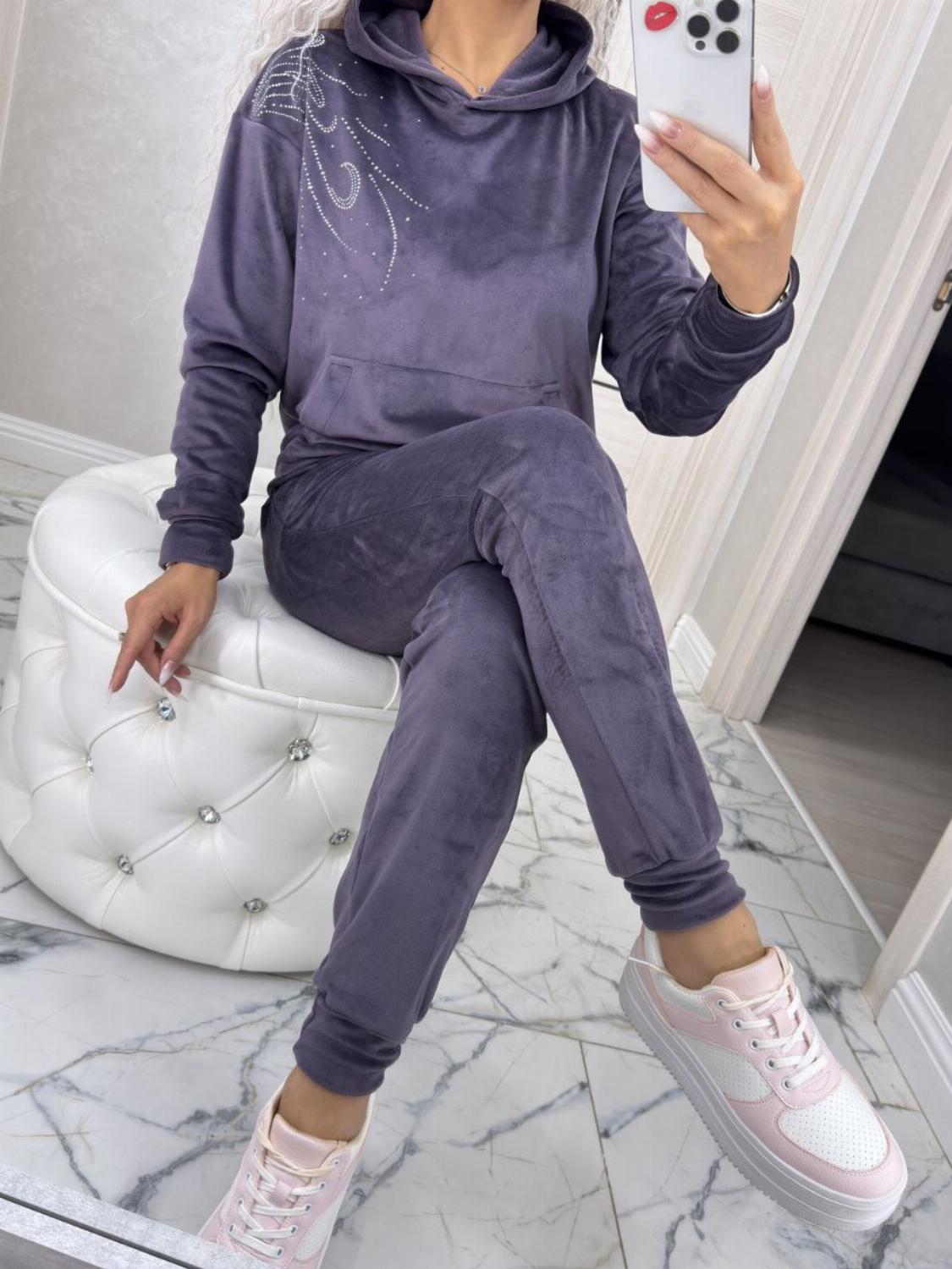 Відкрийте для себе поєднання стилю та комфорту з нашим сучасним костюмом із турецького велюру на флісі. М’який, теплий та приємний до тіла – він створений для щоденного затишку. Вишукані декоративні елементи на худі та штанах додають образу елегантності, а продуманий крій забезпечує ідеальну посадку та свободу рухів.