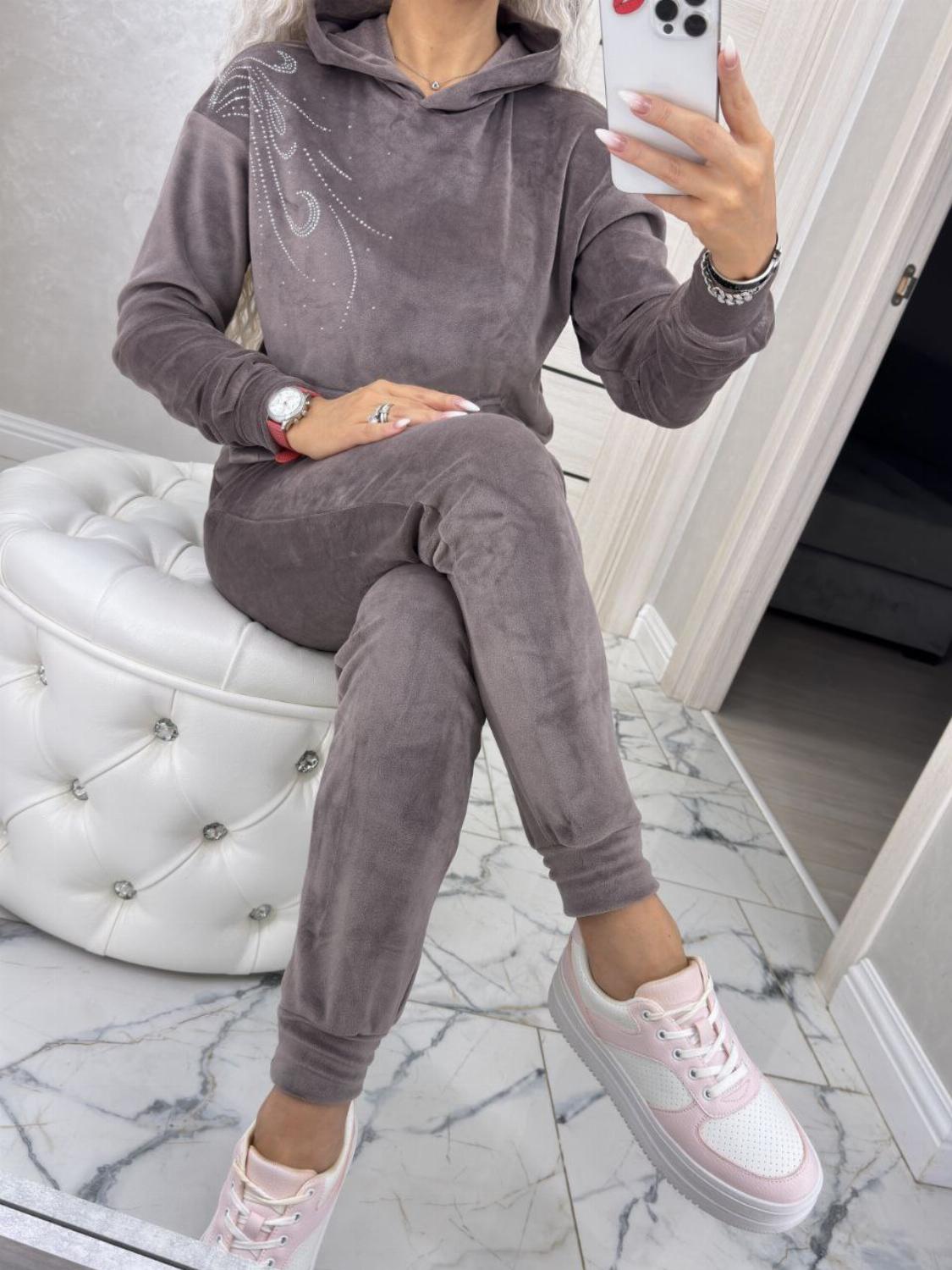 Відкрийте для себе поєднання стилю та комфорту з нашим сучасним костюмом із турецького велюру на флісі. М’який, теплий та приємний до тіла – він створений для щоденного затишку. Вишукані декоративні елементи на худі та штан...