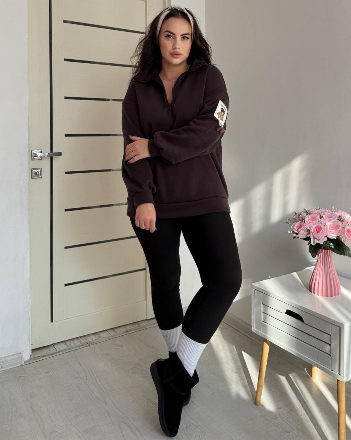 Модель вільного крою виглядає сучасно та легко поєднується з легінсами, джинсами чи спортивними штанами.