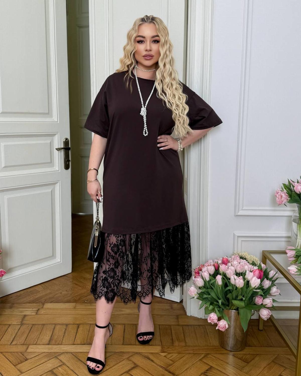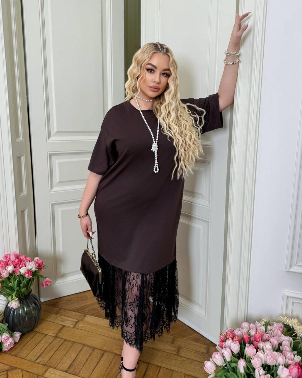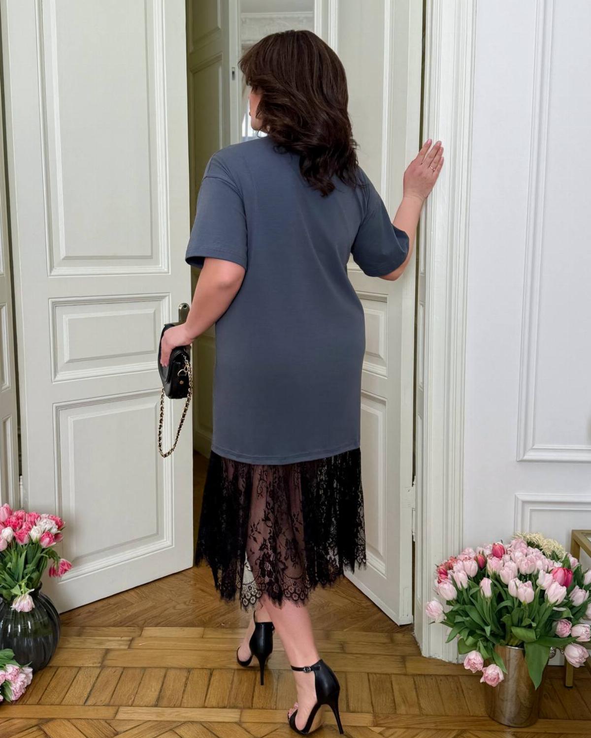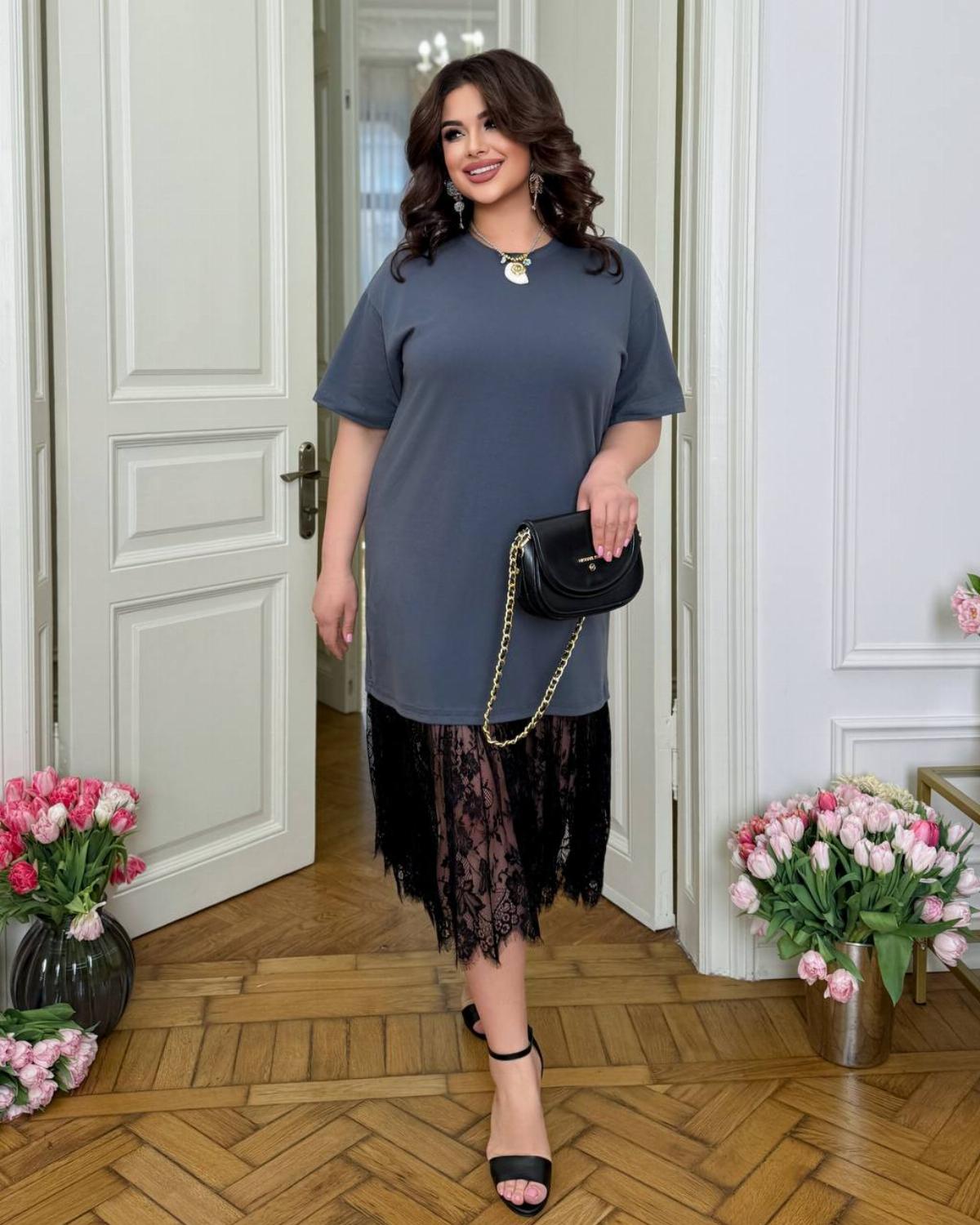 Пропонуємо вам стильну та зручну сукню з турецького куліру, оздоблену вишуканим французьким мереживом по подолу. Ідеальний вибір для вечірніх прогулянок, побачень або святкових зустрічей.