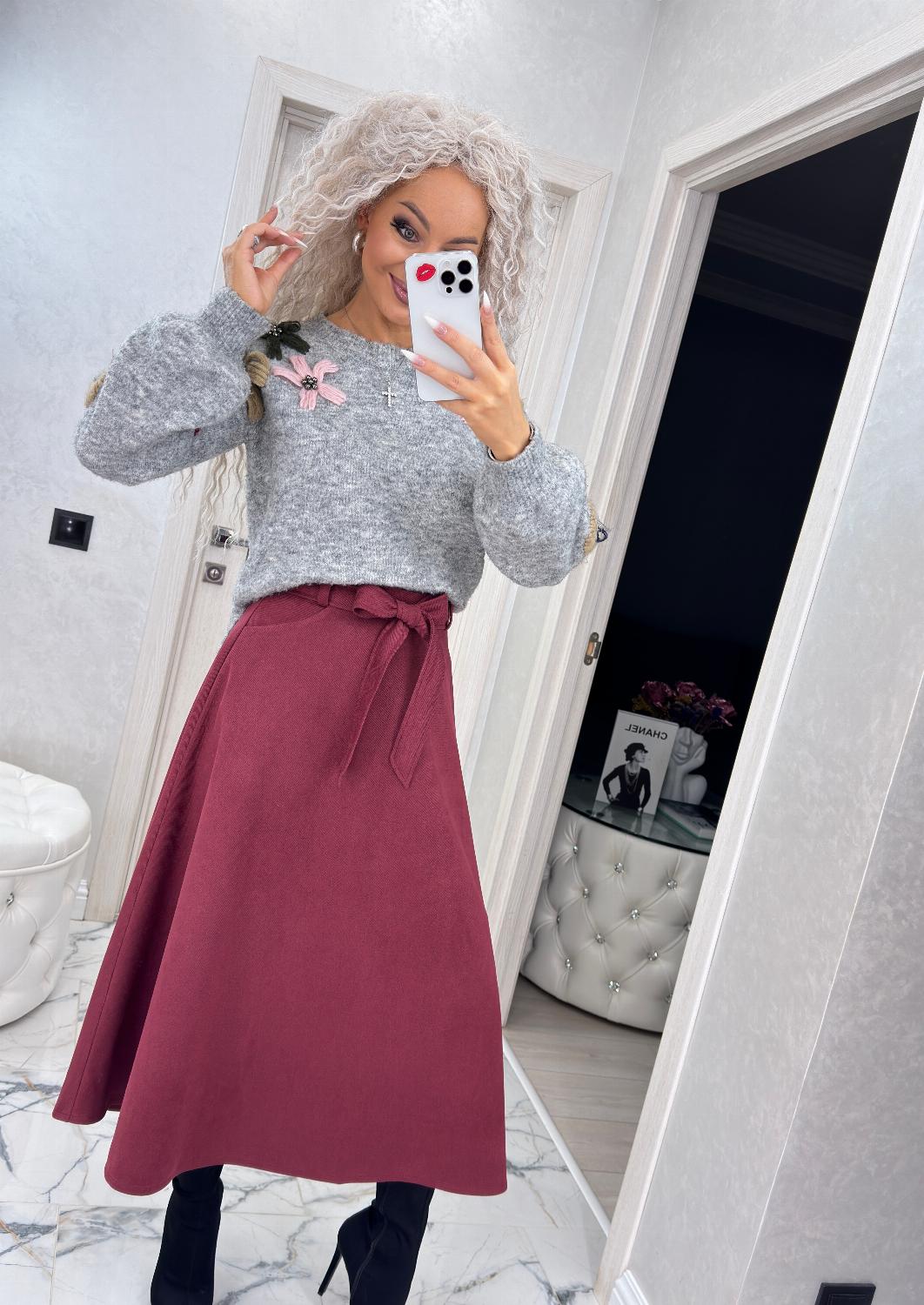 Представляємо вашій увазі стильну новинку - спідницю-міді "Helga". Дана модель виконана з високоякісного замшу-діагональ. Спідниця йде в комплекті з поясом, з боків є внутрішні кишені. Дана модель чудово поєднується з блузами, кофтами, футболками та топами. Також прекрасним доповненням до неї стане піджак або коротенька куртка з еко-шкіри.
